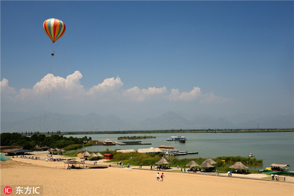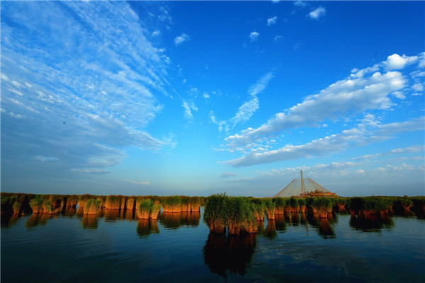 Shahu Lake, one of the top 10 destinations for holidays in Shizuishan city, Ningxia Hui autonomous region in Northwest China, is surrounded by lush marshlands and desert, and is known as the "pearl of the desert" along the Silk Road.
