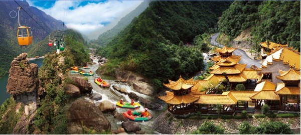 Dajue Temple is another popular spot in the scenic area. It is a huge granite cave, with a depth of 69 meters, a width of 99 meters, and a height of 19 meters. It consists of seven parts, including the main hall, Ksitigarbha’s hall, and more. Dajue Mountain Town is also built to be a leisure resort at the foot of Dajue Mountain. It covers an area of more than 60 mu (4 hectares) with an investment of 60 million yuan ($8.71 million). Dajue Mountain Canyon Drafting is the most exciting activity here. It passes through a valley, three bay, six pools, and nine waterfalls with a length of 3.6 kilometers and a drop of 188 meters.