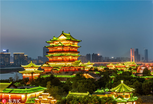 The night scene at the Yueyang Tower is especially attractive. [Photo/IC]