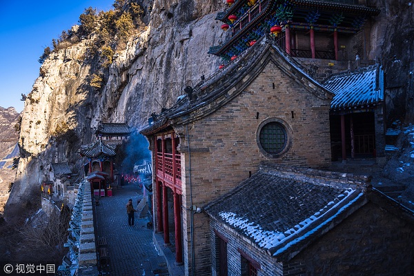 The view from the bottom of the Palace of Nyuwa Scenic Spot in Shexian county, Handan, Hebei province [Photo/VCG]
