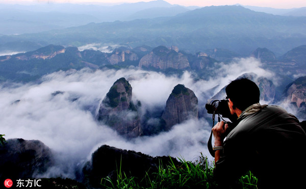 The stunning scenery provides a perfect spot for photography enthusiasts to take photos of the sea of clouds. [Photo/IC]