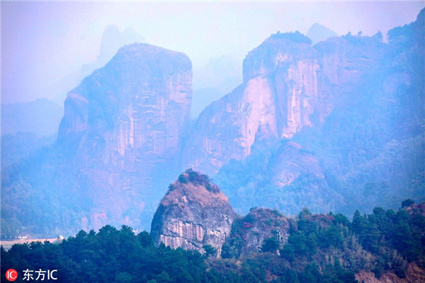 Langshan Mountain is famous for its characteristic Danxia landscape. [Photo/IC]
