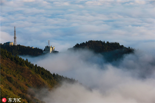 The highest peak on Hengshan Mountain, Zhurong Feng, is 1,300.2 meters high. It's a good place to enjoy seeing the sunrise over a sea of clouds. [Photo/IC]