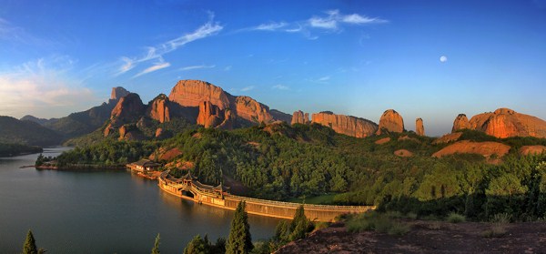 Guifeng Peak is a typical example of Danxia geomorphology. It is not only a "natural botanical garden," but also a "natural zoo." It is called a "natural oxygen bar," due to its fresh air and high levels of negative ions. It boasts many relics from Shang and Zhou dynasties, castle ruins of the Taiping Heavenly Kingdom, and ruins of the Ruixiang Temple. It is also the birthplace of Yiyang Opera, one of the four major operas from the Ming Dynasty.