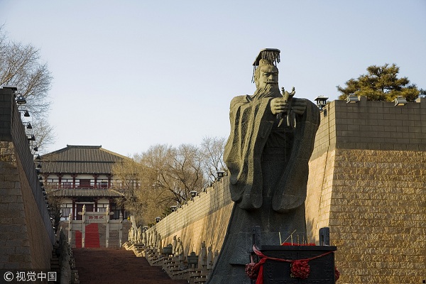 The sculpture of Qinshiwang, founder of the Qin Dynasty (221-206 BC) and the first emperor of a unified China, at the Shanhai Pass [Photo/VCG]