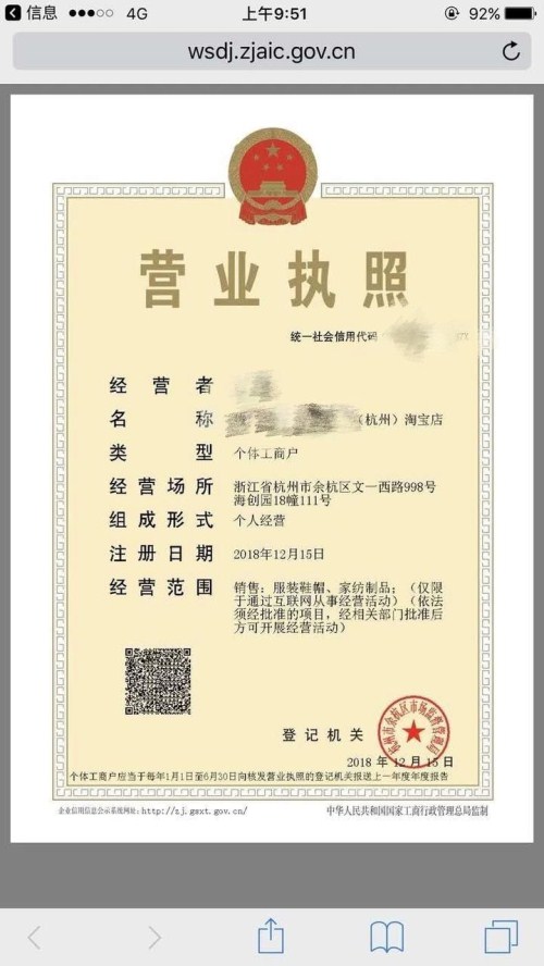 An online clothing store in Yuhang district of Hangzhou received the license.