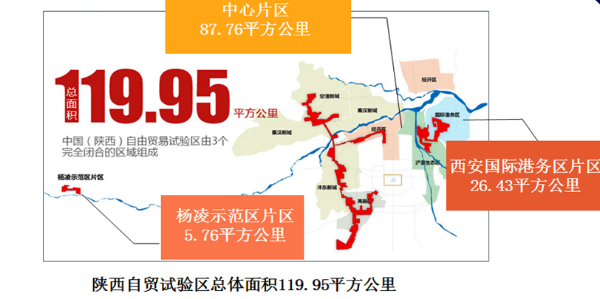 It covers a total area of 119.95 square kilometers, including the 87.76-sq-km core area, the 26.43-sq-km Xi'an International Trade and Logistics Park, and a 5.76-sq-km area of the Yangling Agricultural Hi-tech Industries Demonstration Zone.