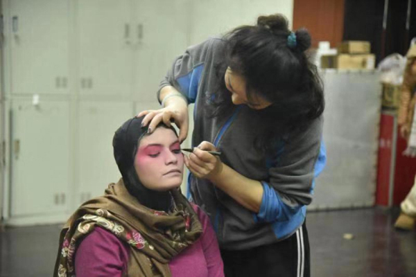 Foreign students not only had the chance to get a close look at the artists' various face masks and unique theatrical makeup but also received a good introduction to the art of the Chinese Peking Opera.