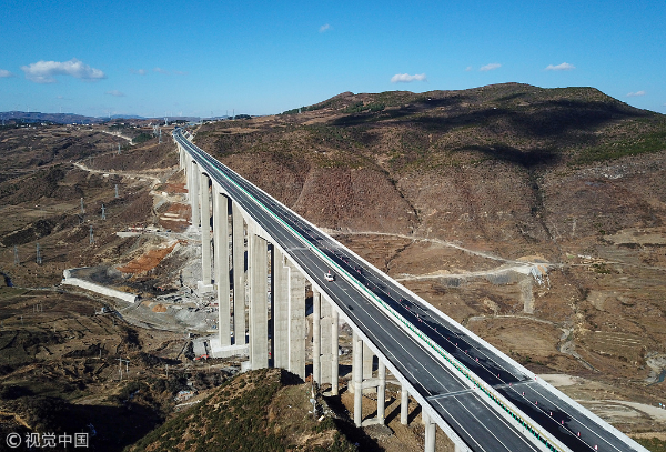A bird's-eye view of the Liupanshui-Weining Expressway in Guizhou province. [Photo/VCG]