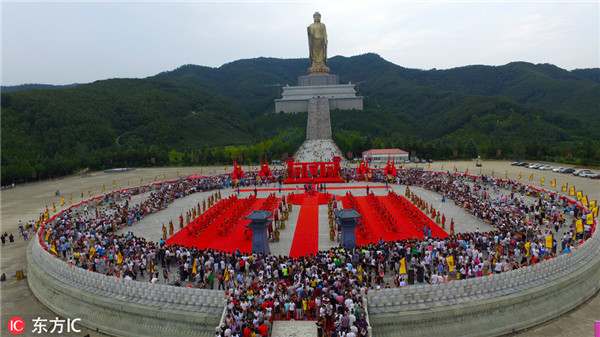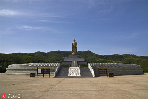Towering 208 meters, the giant Buddha is the tallest of its kind in the world, which cost 12 years and 1.2 billion yuan ($174.47 million) to build. It stands in the central plains of China surrounded by the green mountains and attracts tens of thousands of believers from home and abroad to worship the giant Buddha.