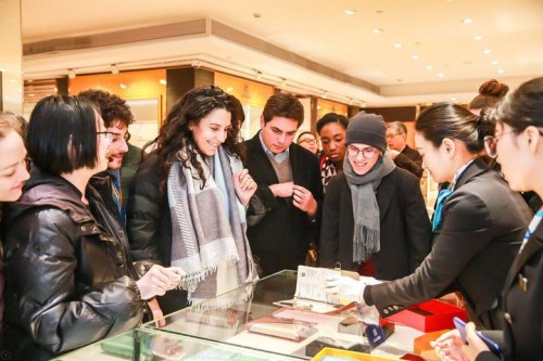 A group of foreign students from the Yenching Academy of Peking University visited the Wensli Group, one of China's largest silk-producing companies in Hangzhou, Zhejiang province, on Jan 10 to see for themselves the delights of Chinese silk.