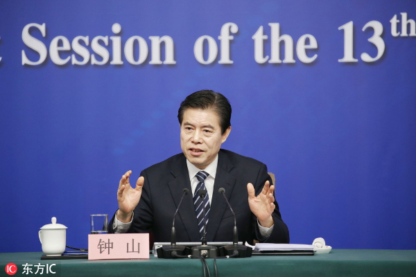 He said the three major tasks of the Ministry of Commerce this year will be holding the second China International Import Expo, properly handling trade frictions with the US and pushing forward pilot FTZs and the Hainan free trade port.