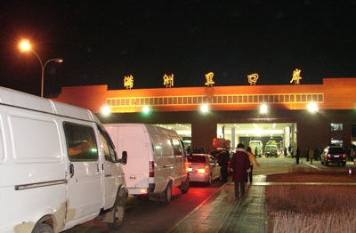 Vehicles queue in line to pass through Manzhouli highway port at night. [Photo/swj.hlbe.gov]
