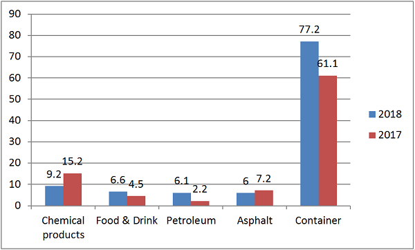 Imports and exports in Jan-Nov 2018 through the highway port compared to the same period in 2017 (10,000 tons/unit)