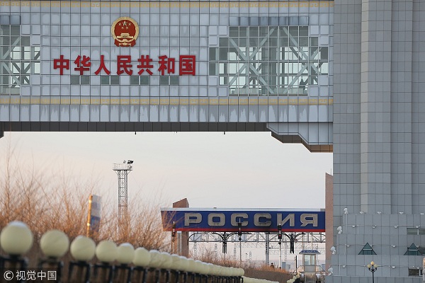 The grand guomen, or national gate, borders Russia in Manzhouli, Inner Mongolia. Raw materials are usually transported from Russia to China through this gate. [Photo/VCG]
