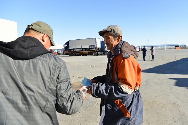 A Mongolian truck driver goes through exit formalities at Ereenhot Highway Port in Ereenhot, Inner Mongolia autonomous region, Nov 9, 2018. [Photo by Zou Yu/Xinhua]