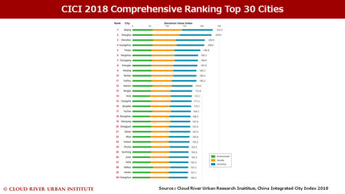 For example, in terms of GDP, the top 30 cities in the index contributed 42.5 percent of the country's total GDP in 2018. They also have 69.7 percent of all the Chinese public companies, showed the research.