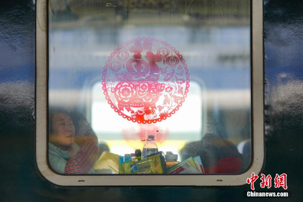 Passengers seen through the window of the K111 on Jan 22, 2019.[Photo/Chinanews.com]