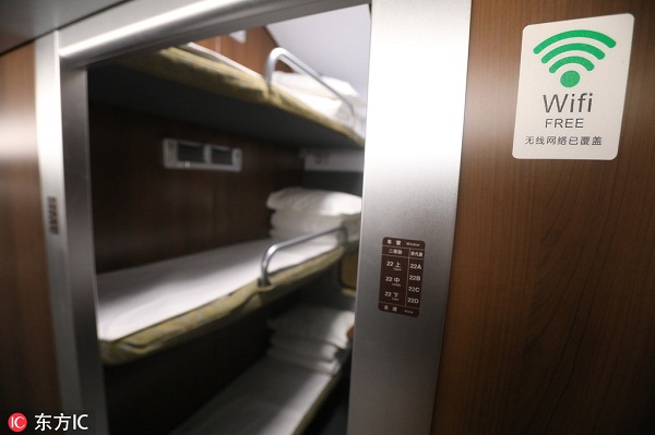An inside look at the sleeping berth carriage of the newly built Fuxing bullet train Hangzhou, the capital of East China's Zhejiang province, on Jan 23, 2019. [Photo/IC]