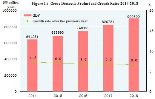 According to preliminary estimation, the gross domestic product (GDP) in 2018 was 90,030.9 billion yuan ($13.6 trillion), up by 6.6 percent over the previous year.