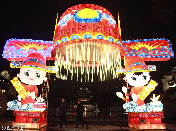 Visitors view lanterns at the 33rd Qinhuai Lantern Festival in Nanjing, East China's Jiangsu province, Jan 28, 2019. [Photo/VCG]