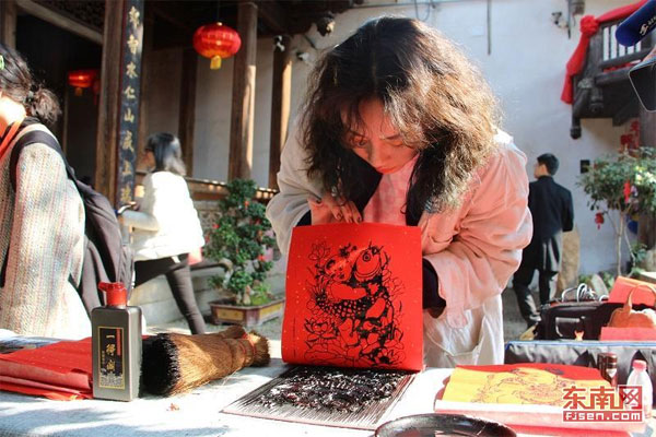 At the Fujian folk custom museum situated at the Three Lanes and Seven Alleys, a historic and cultural block in Fuzhou, the students studied and learned how to make some traditional handicrafts to mark the Chinese New Year, including painting transcription, paper cutting, sugar-coated figurines and Chinese knots.