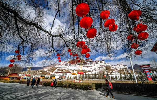 The alleys around Tsalgongthang Monastery in the regional capital of Lhasa were more crowded than usual on Sunday, and business was booming as people were busy preparing for not one but two New Year's celebrations on the same day. This year, Losar and Spring Festival both fall on Tuesday.