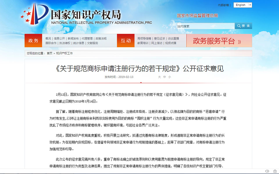 The regulations draft has been publicized on the CNIPA website, soliciting suggestions and opinions from the public until March 14.