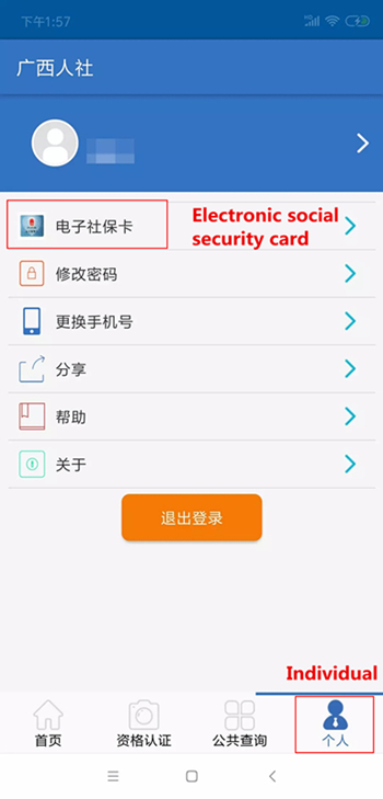 Open the app, enter the "Individual" interface, and click "Electronic social security card".