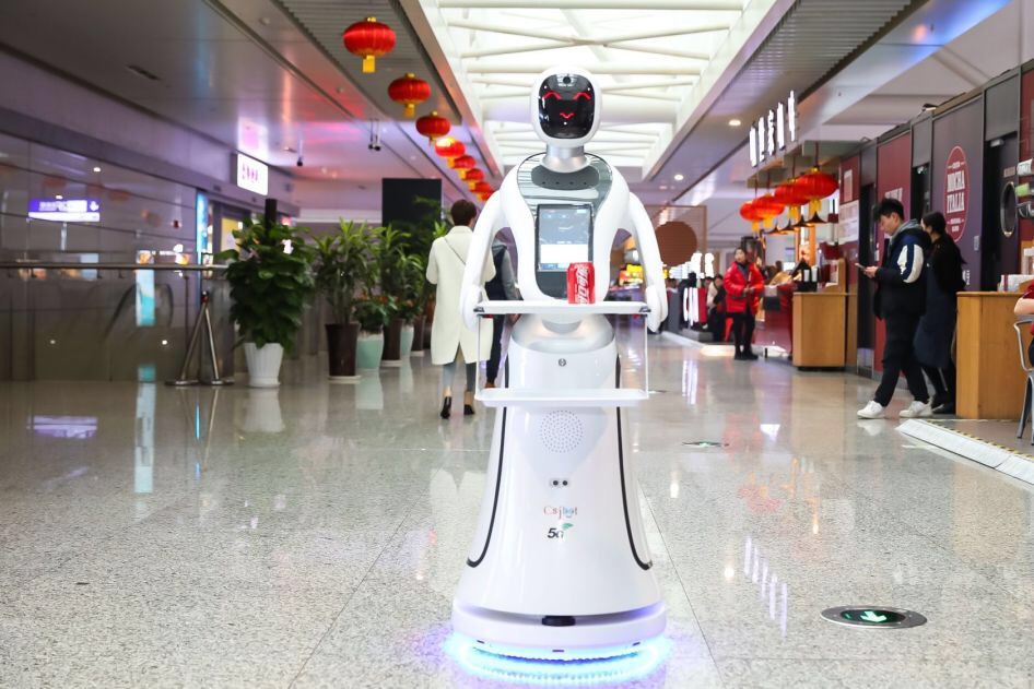 A smart robot at Shanghai Hongqiao Railway Station on Feb 18. [Photo provided to chinadaily.com.cn]