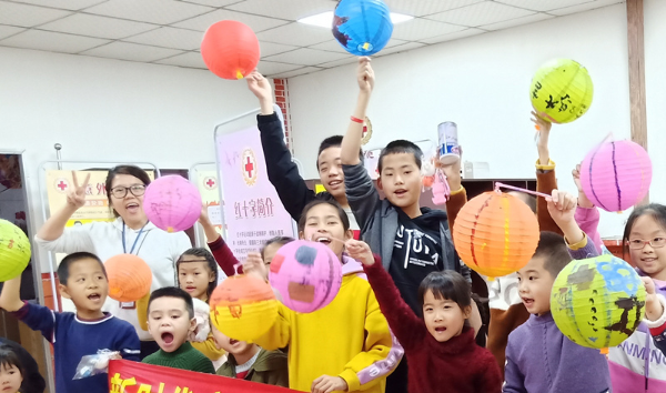 Children hold handmade lanterns at neighborhood center in Haicang district, Xiamen, Fujian province, on Sunday. China Daily