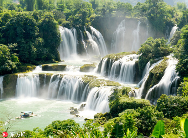 Located in South China's Guangxi Zhuang autonomous region on the border with Vietnam, Detian Waterfall is the biggest cross-border waterfall in Asia and the fourth-largest in the world. It straddles China and Vietnam, as well as the Pingxiang Friendship Pass, a major route for people traveling between the two countries.