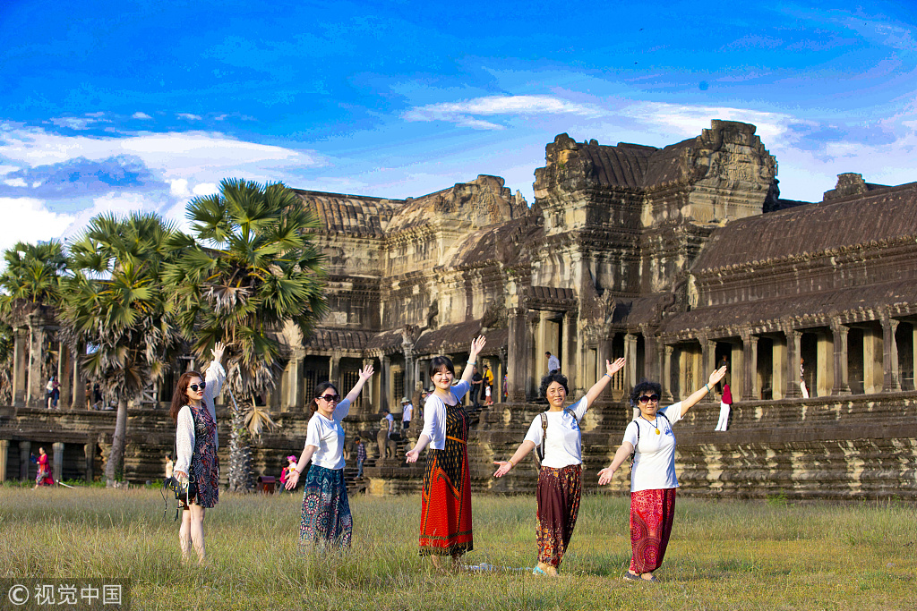 Chinese tourists post at Angkor Wat in Siem Reap, Cambodia on Dec 9, 2018. [Photo/VCG]