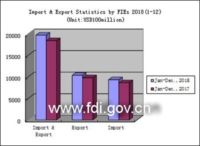 In 2018, imports and exports of foreign-invested enterprises totaled US$ 1.97 trillion, up by 7.01 percent year-on-year, 5.54 percent lower than the growth rate of the country in the same period, accounting for 42.57 percent of the national total.