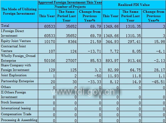 In 2018, 60,533 enterprises (excluding banking, securities and insurance) with foreign direct investment were established, an increase of 69.8 percent over the previous year, and the foreign direct investment actually utilized was 885.6 billion yuan, up by 0.9 percent, or 135.0 billion US dollars, up by 3.0 percent.