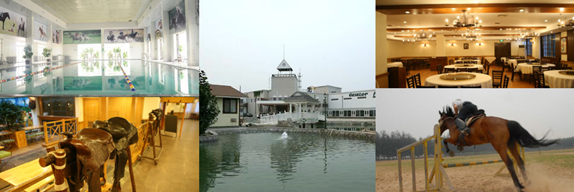Restaurants provide enjoyable large banquets, barbecues, cocktail parties, buffets, all-you-can-eat meals, and American-country-style taverns with soft lighting and the right atmosphere to match the main theme of the resort. A variety of entertainment is provided, including bowling, fishing, billiards, tennis, table tennis, chess, ballroom dancing, a cinema, swimming, and a sauna. On top of that, an 1,100 mu (73 hectare) arena equipped with a 1,400-meter track for horse riding and jumping offers well-trained Ili horses from the north-western Xinjiang region of China. You can choose to join in this novel and exciting sport, which enhance both your physical fitness and bravery, or ride your horse outside the track around the Yongding River and over vast meadows.