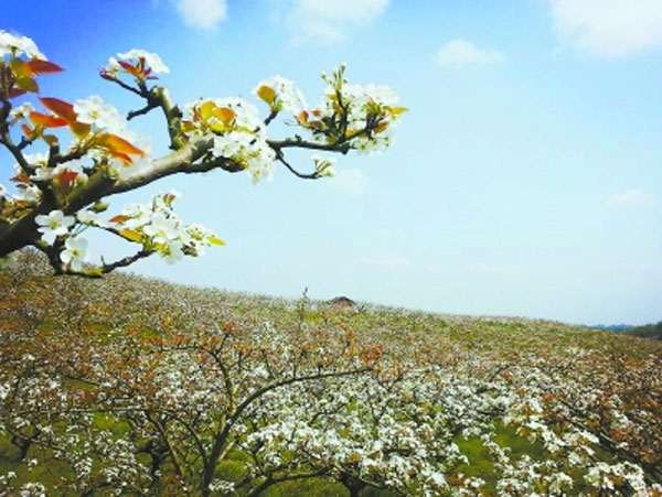 Every March and April, Fengyuan Village in Jianning, a county in Sanming known as the "hometown of yellow pears in China", becomes a sea of flowers. The village, 7 km from the county center, boasts a garden that occupies more than 66 hectares, and is covered with peach and pear trees.