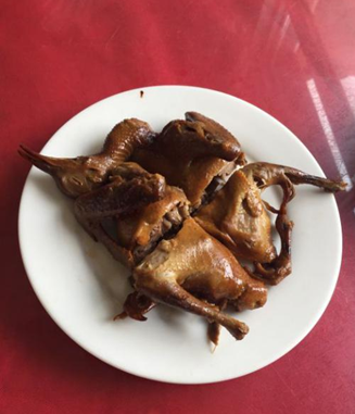 Specialties: wild goose, wild boar, pheasant, wild duck, cicada, grasshopper, ox head feast, fish stewed in traditional caldron, and roasted pigeon.