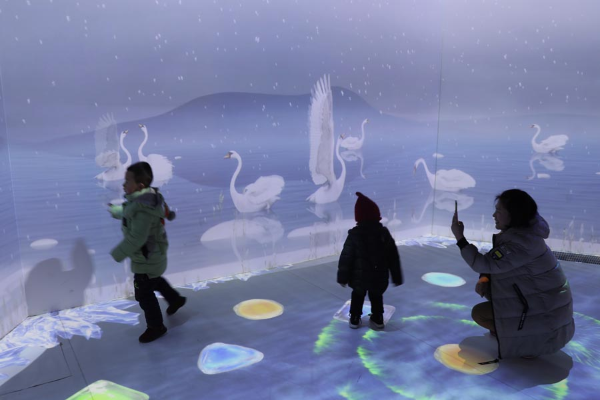The Great Swan Science Museum in Rongcheng is equipped with interactive facilities, including a VR immersive cinema. [PHOTO BY WANG JING/CHINA DAILY]