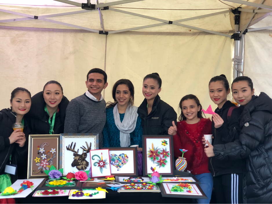 Artists from Chongqing Disabled People's Performing Art Troupe visit a local handicraft stand in Cairo, Egypt during the Third Awladna International Forum for Arts of Gifted, on Feb 15-22. [Photo provided to chinadaily.com.cn]
