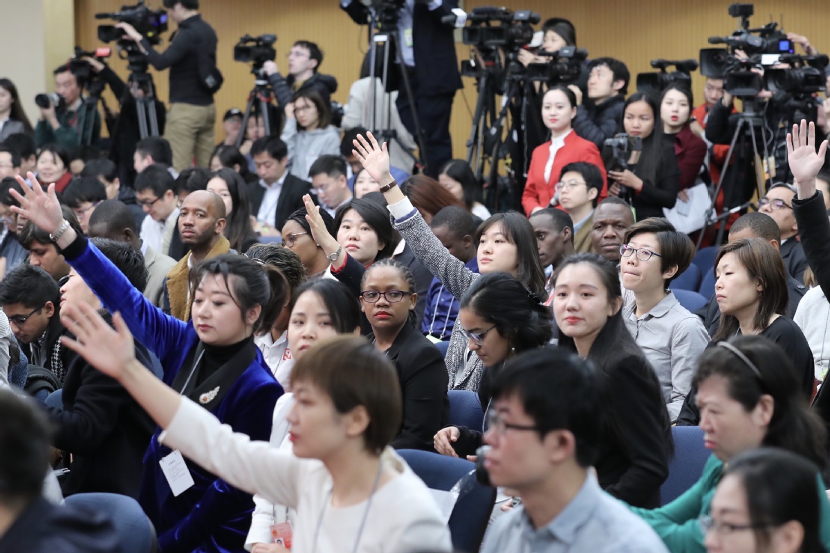 Reporters raise their hands to ask questions at a NDRC news conference in Beijing on March 6, 2019. [Photo by Kuang Linhua/chinadaily.com.cn]