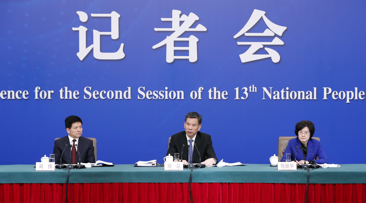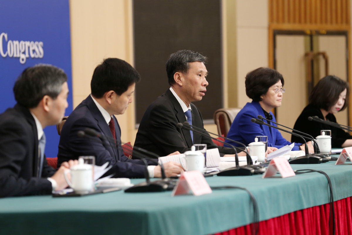 Liu Kun, minister of Finance, and Vice Ministers Cheng Lihua and Liu Wei answered questions regarding reform of fiscal and taxation system and financial issues at a press conference during the second session of the 13th National People's Congress on March 7, 2019.