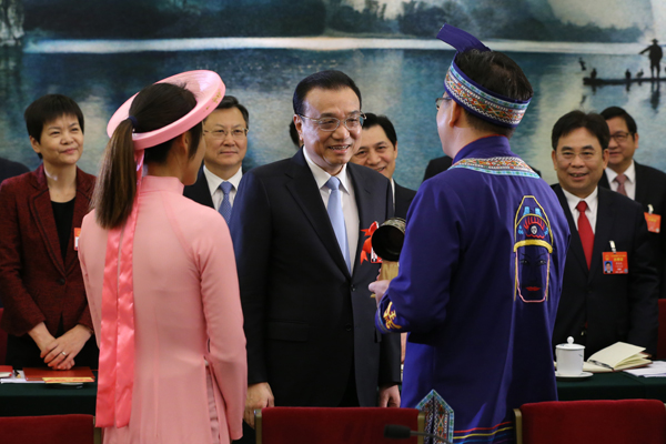 Premier Li Keqiang joined panel discussions with NPC deputies from South China’s Guangxi Zhuang autonomous region during the second session of the 13th National People’s Congress on March 6. [Photo/english.gov.cn]
