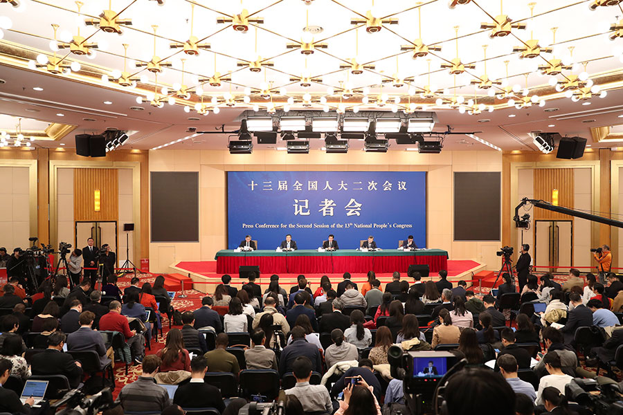 The Ministry of Commerce holds a news conference in Beijing on March 9, 2019. [Photo by Feng Yongbin/chinadaily.com.cn]