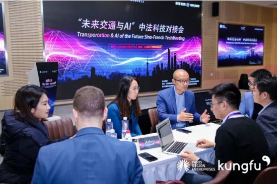 Technology representatives from China and France exchange ideas at a meeting featuring future transportation and artificial intelligence in Zhangjiang International Innovation Harbor, Pudong New Area, Shanghai, on March 7. [Photo/WeChat account: kungfustartups]