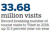 Last year, Tibet received a record-breaking 33.68 million visits, a year-on-year increase of 31.5 percent, according to the local tourism bureau. This brought in more than 49 billion yuan ($7.3 billion) in tourism revenue last year, a 29.2 percent year-on-year increase.
