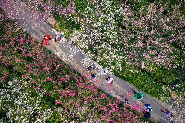 Visitors enjoy a spring outing on Meihua Mountain, Nanjing city, Jiangsu province, Mar 10, 2019. Blooming flowers and leaves on the trees give the new season some fresh color. [Photo by Su Yang/Asianewsphoto]