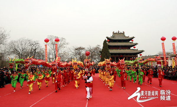 A group of performers stage a dragon dance during a shehuo show in Taosi village, Xiangfen county, Linfen city, Shanxi province, March 8. A shehuo show is a typical folk custom for celebrating Chinese festivals. The day marked the traditional Chinese Longtaitou Festival, or Dragon Head-raising Festival, which refers to the start of spring and the farming season and falls annually on the second day of the second lunar month. [Photo/sxgov.cn]