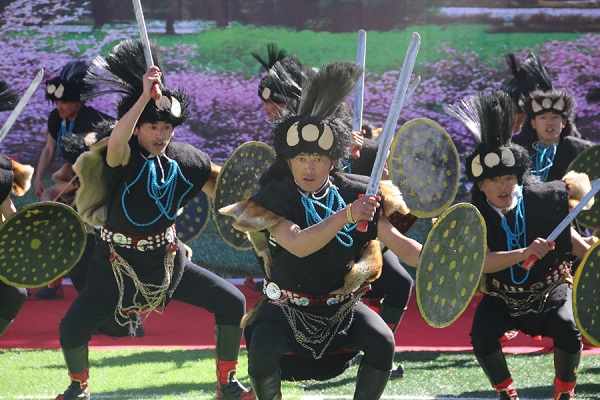 A Tibetan dance during the opening ceremony of the peach flower festival. [Photo by Yang Youhong/For chinadaily.com.cn]