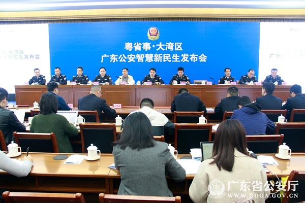 Guangdong police holds a press conference to introduce new measures to serve the Guangdong- Hong Kong- Macao Greater Bay Area. [Photo/gdga.gov.cn]